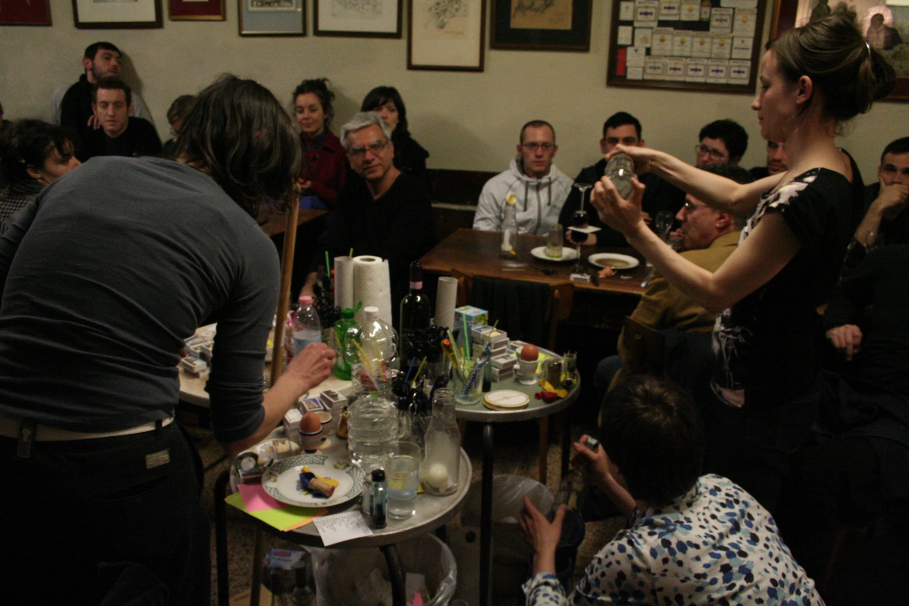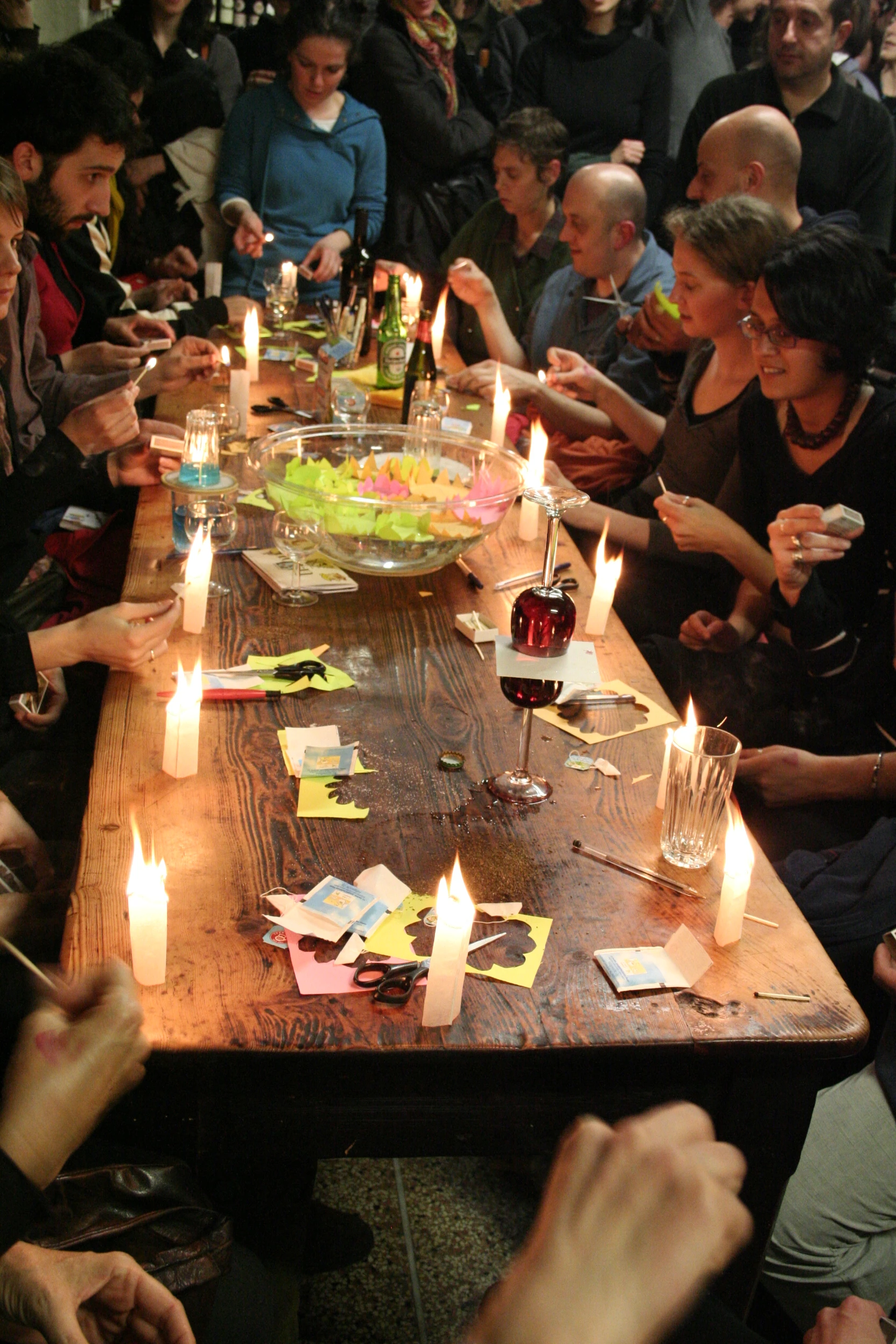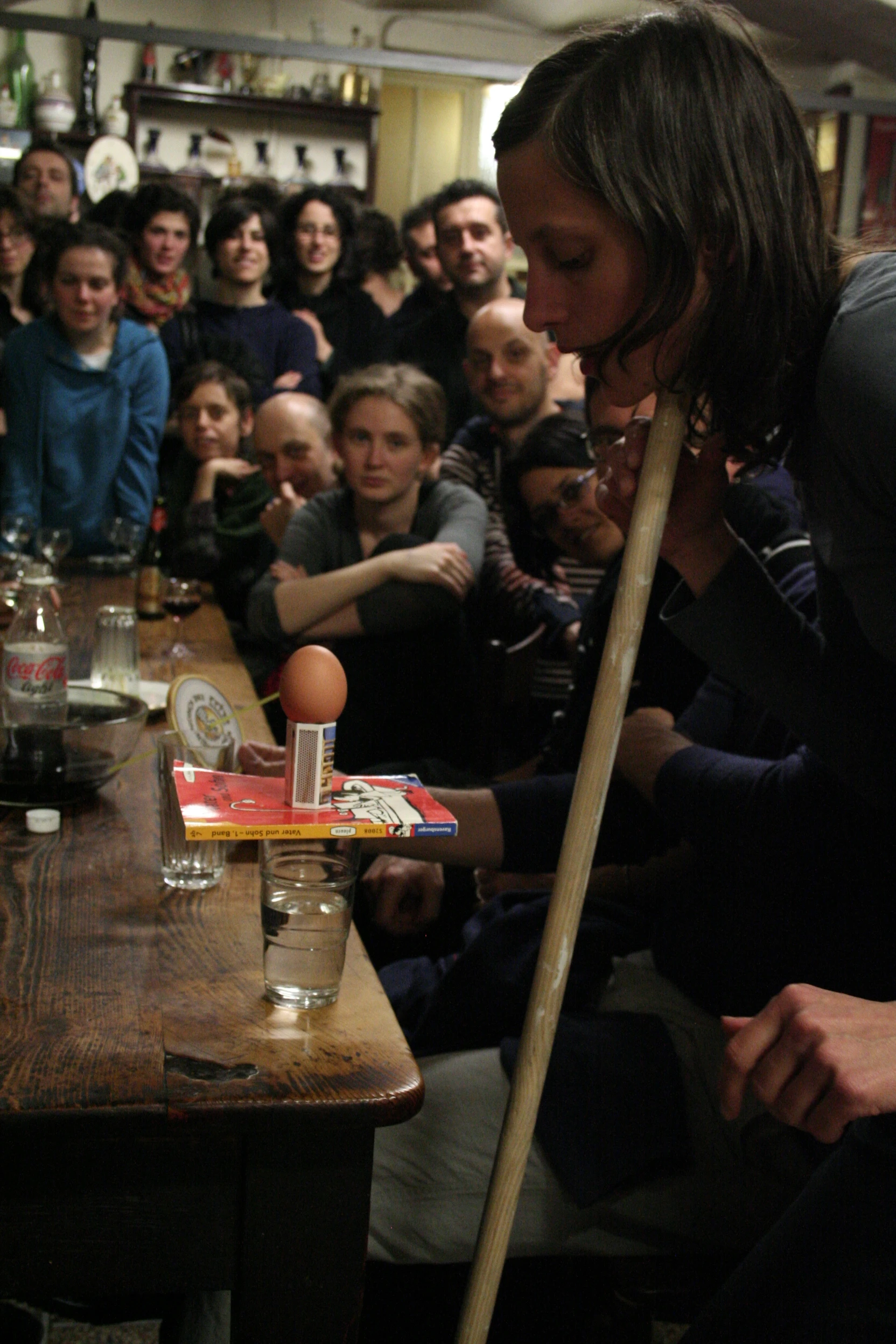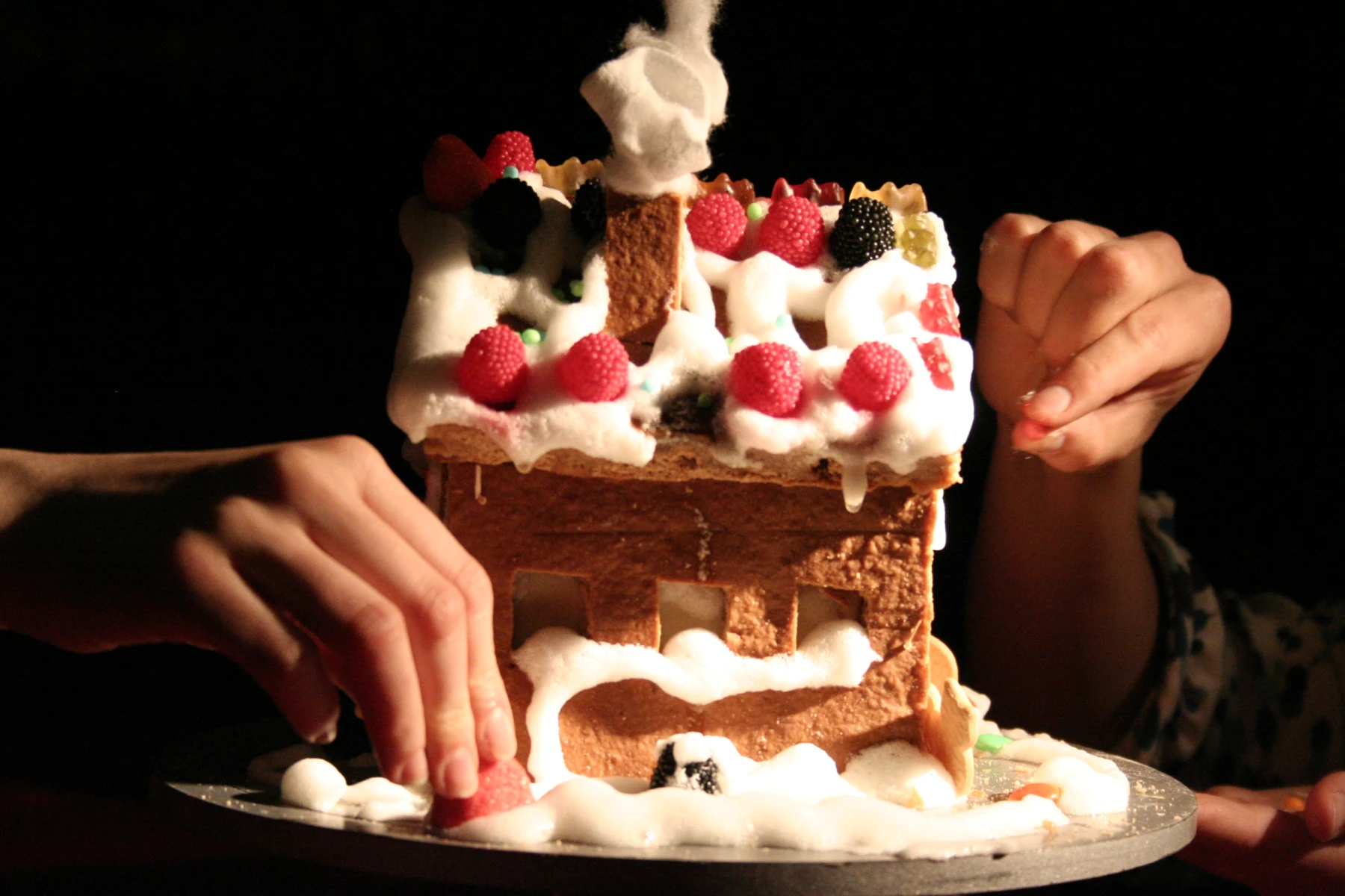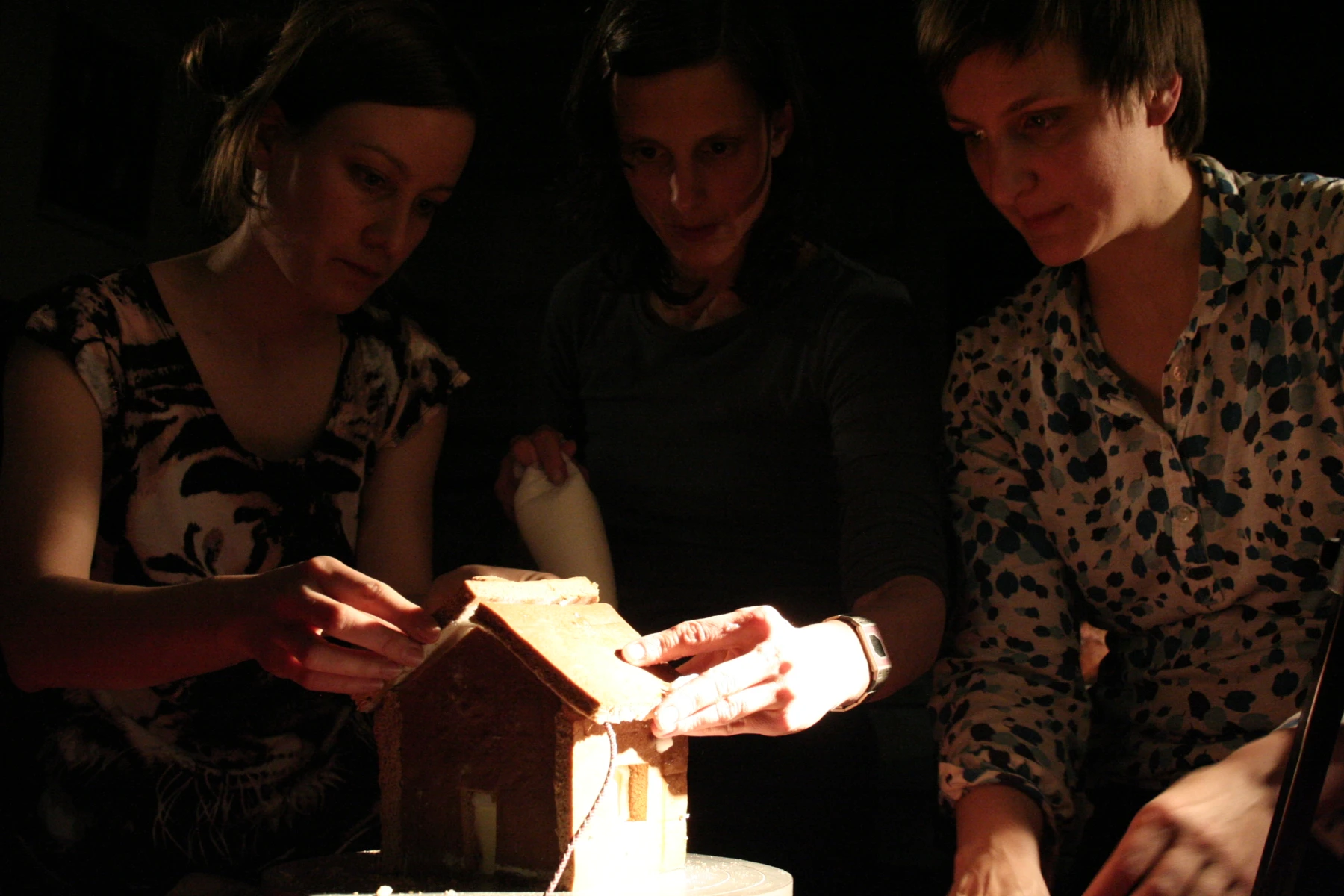Backen ist Handarbeit. Das zeigt sich zu Beginn von Good Hands, als eine Performerin an ihrem Tisch ein Rezept vorliest und dessen Anweisungen Schritt für Schritt befolgt. Sie greift zielsicher aus dem Regal hinter sich die einzelnen Zutaten heraus, misst alles sorgfältig ab und mischt Mehl, Eier, Butter, Zucker und verschiedene Gewürze zu einem geschmeidigen Teig. Die neben ihr auf dem Tisch installierte Videokamera filmt jeden einzelnen Handgriff; in Großaufnahme flimmern sie über Fernsehbildschirme zu beiden Seiten. Während der Kuchen nun 30 Minuten lang fertig backt, erteilen die vier PerformerInnen den Gästen eine Handarbeitsstunde der besonderen Art: Mit viel Geschick basteln sie an vier Tischen an einer Reihe chemischer, physikalischer und mechanischer Tricks - jede(r) bespielt eine dieser ‚Bühnen’: Wasser und Wein tauschen sich langsam in zwei übereinander stehenden Gläsern aus. Ein brennendes Streichholz wird in eine Glaslasche geworfen, und das entstehende Vakuum saugt ein Ei ins Flascheninnere. Ein Kaubonbon lässt Cola wie eine Fontäne aus ihrer Flasche schießen. Und aus angezündeten Teebeuteln werden kleine Raketen, die leuchtend in die Höhe steigen. Good Hands spielt mit der oft an das Theater herangetragenen Erwartungshaltung der Unterhaltung. Die Einfachheit der Handgriffe und die Alltäglichkeit der Materialien stehen zu den reißerischen Effekten der Küchentischmagie in Kontrast und provozieren Staunen und Gelächter über das Rätselhafte im Allzubekannten. Was hier geschieht, ist klein und einfach - nicht viel anders als das, was Kinder begeistert austüfteln oder was in lustiger Runde beim Kneipenabend zum Besten gegeben wird. Dabei wird, gegenläufig zu der Effektivität kurzweiliger Unterhaltungsdramaturgie, jeder Handlung ihre eigene Zeitlichkeit und ihr eigenes Tempo zugestanden – sei es das Backen und Verzieren eines Kuchens oder das Vorbereiten und Durchführen eines Tricks. Die Kuchenherstellung und die Experimente aus der Speisekammer-Physik treffen sich als Prozesse des Mischens von Zutaten, die aufeinander reagieren und so ihren Zustand verändern. Am Ende zeigt der köstliche Duft aus dem Ofen die abgeschlossene Transformation des Kuchens vom Anfang an, der sich dann noch ein weiteres Mal verwandelt: in ein kunstvoll verziertes Pfefferkuchenhaus. Doch wer sich schon auf die Verkostung freut, geht nur einem letzten Streich auf den Leim...