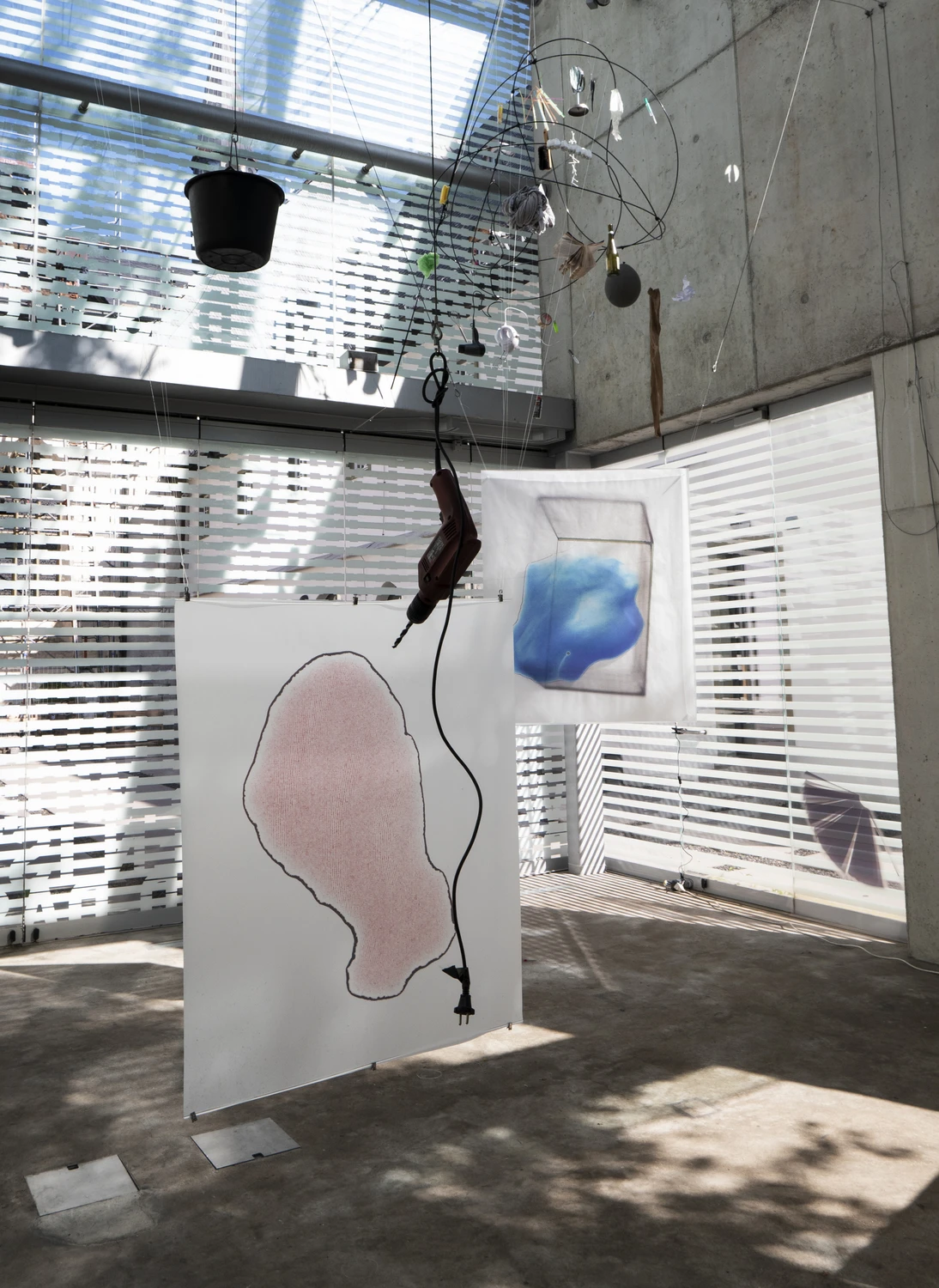 In OUT OF HANDS übersetzt Eva Meyer-Keller ihre choreografische Praxis in eine Ausstellung. Im Austausch mit einem Ensemble aus Gegenständen, die ihrer direkten Umgebung entstammen – ihrem Bad, der Küche oder dem Schlafzimmer – entsteht eine räumliche Einladung zum exzessiven Assoziieren. Eva Meyer-Keller erforscht die Schönheit der gewöhnlichen Dinge und lenkt die Aufmerksamkeit auf Aspekte unserer Umgebung, denen wir gewöhnlich nur wenig Zeit widmen. Durch wiederkehrendes (Um-)Arrangieren erzählt OUT OF HANDS die Geschichten, die sich hinter dem 'Zu Bekannten' verbergen und lädt ein, deren berauschende Schönheit (neu) zu entdecken.