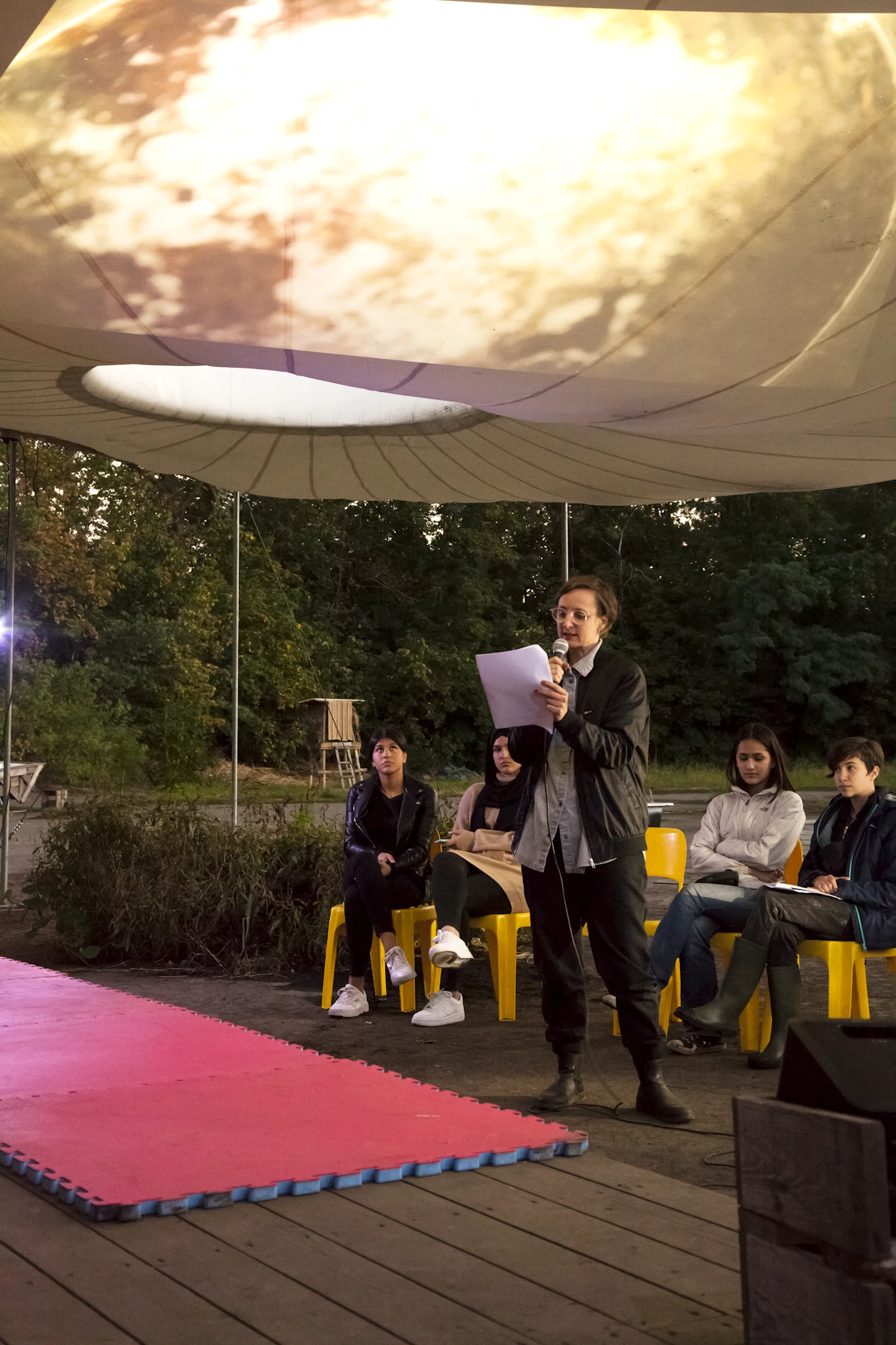 Eva Meyer-Keller beschäftigt sich in ihrer Arbeit mit Naturwissenschaften. Diesmal nimmt sie uns mit unter die Erde, wo sie den Mikroprozessen im Schlamm und im Wasser nachspürt. Der Boden unter unseren Füßen scheint zunächst still und omnipräsent. Er trägt uns und ist doch eigentlich noch so viel mehr. In ihm tummeln sich Mikroorganismen, die im Dunkeln in komplexen Verwertungskreisläufen Material zersetzen. Er ist es ein Ort der Transformation, des Wachsens und des Entstehens neuen Lebens. Auch die Pubertät ist geprägt von Veränderungen, von Transformationen, die zu einem grossen Teil im Verborgenen stattfinden. Die Beschäftigung mit dem Boden und den Transformationen in ihm dienen als Anlass, um über Veränderungen in unserem täglichen Leben zu sprechen – und dies aus verschiedenen Perspektiven: aus der einer einzelligen Kieselalge bis zu denjenigen von uns Menschen. Wie in der Erdmasse trifft in diesem Projekt alle(s) aufeinander und reagiert miteinander.